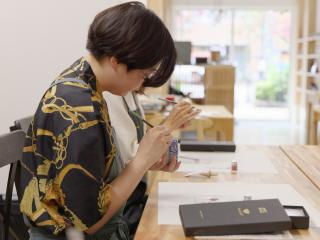 水無方藍窯(みなかたらんよう)という名前で、釉裏彩色の磁器作品を作っています。 草月流いけばなを教えています。